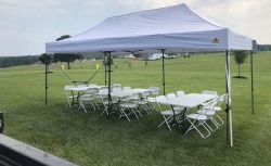 Be sure to complete your canopy rental with extra rental items that make your event a complete success. Mostly everyone needs tables and chairs to add to their 10x20 canopy rental so that your guests will have a place to sit, eat, and stay comfortable. Head over to our tables and chairs selection.